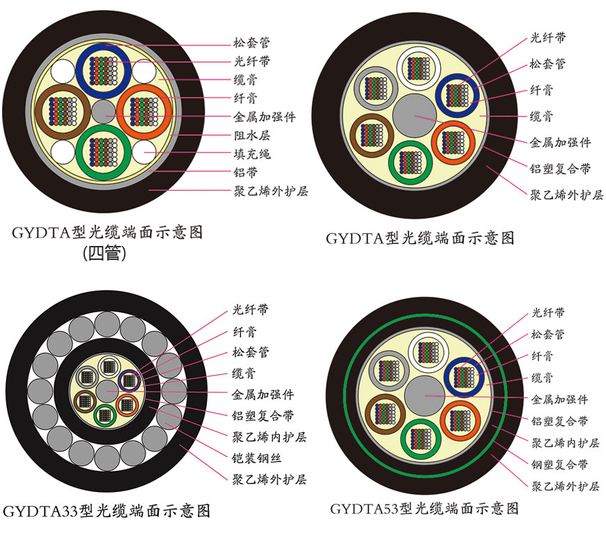 金属加强构件、光纤带松套层绞填充式、钢(铝)-聚乙烯粘结护套通信用室外光缆