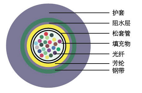 皱纹钢带铠装层增强了光缆的抗侧压、防潮性能。